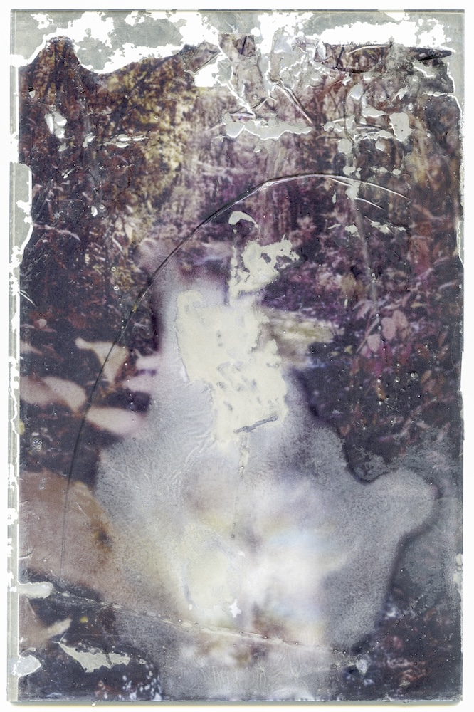 Apophenia is what stimulates us to find links between images or pieces of information which may be totally unrelated. During intuitive and sensorial journeys through the landscapes of the Democratic Republic of the Congo, Léonard Pongo takes photographs of fragments of nature which for him resonate with traditional narratives or forms. He then transforms those images into new objects: here the transfer of gelatine used in photographic printing on to glass plates. Detached from the paper then stuck on the plates, this fragile film creates folds, tears, fragmentations. These are all novel elements, disturbing the initial image and proposing new forms, thereby encouraging us to activate other forms of perception. Just as the artist immersed himself in the landscape, so we lose ourselves in these images. Evoking the early years of photography, these glass plates reveal themselves in such a hampered manner that they make any definitive reading impossible. In this way photography recovers its right to opacity.